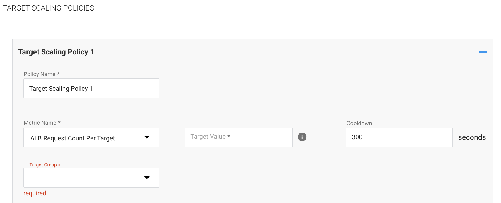 2. Under Target Scaling Policies, click Add, and then click on the policy name to open the form.