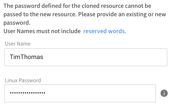 • User Name: The administrator username for the VMs in Azure. Cannot include reserved words.