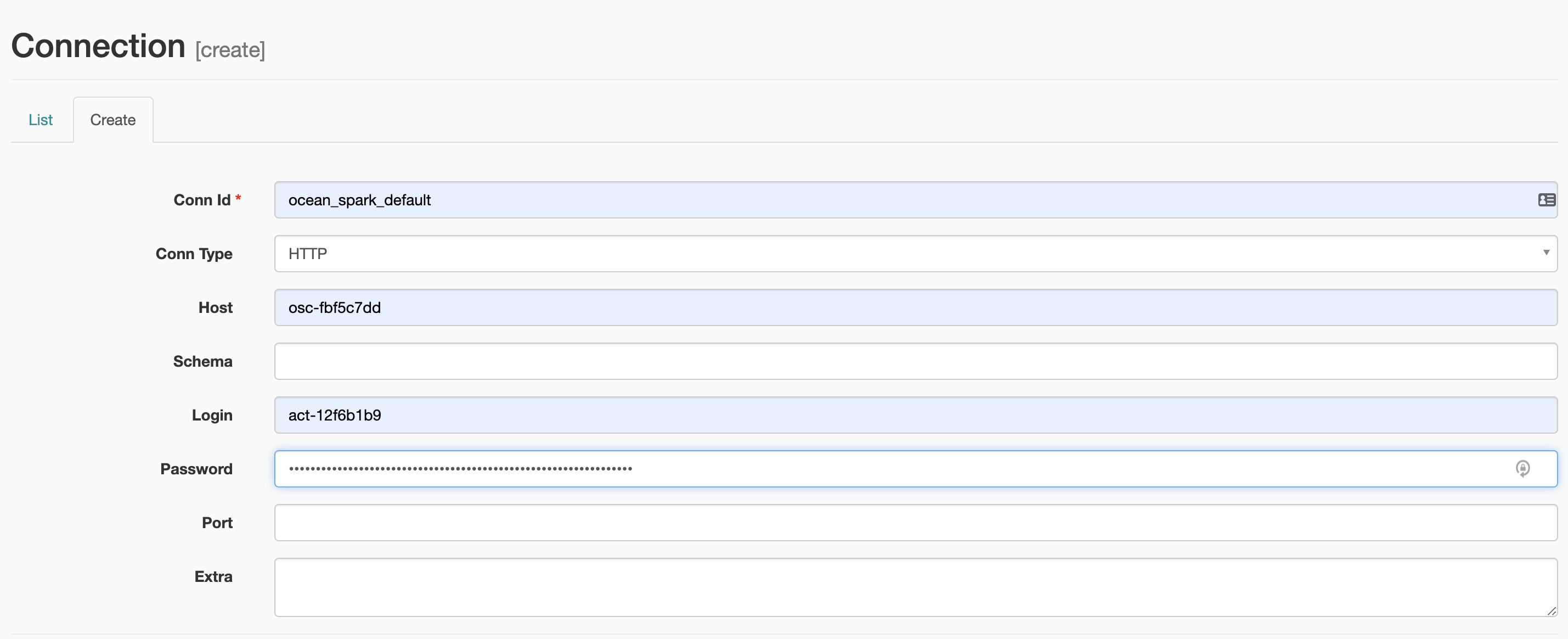 - Connection ID: Use ocean_spark_default by default. You may use a different name.