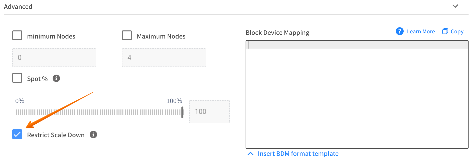 restrictScaleDownparameter toTrue. Once enabled, virtual node group nodes are treated as if all pods running have therestrict-scale-downlabel. Ocean will not scale nodes down from the virtual node group unless they are empty.