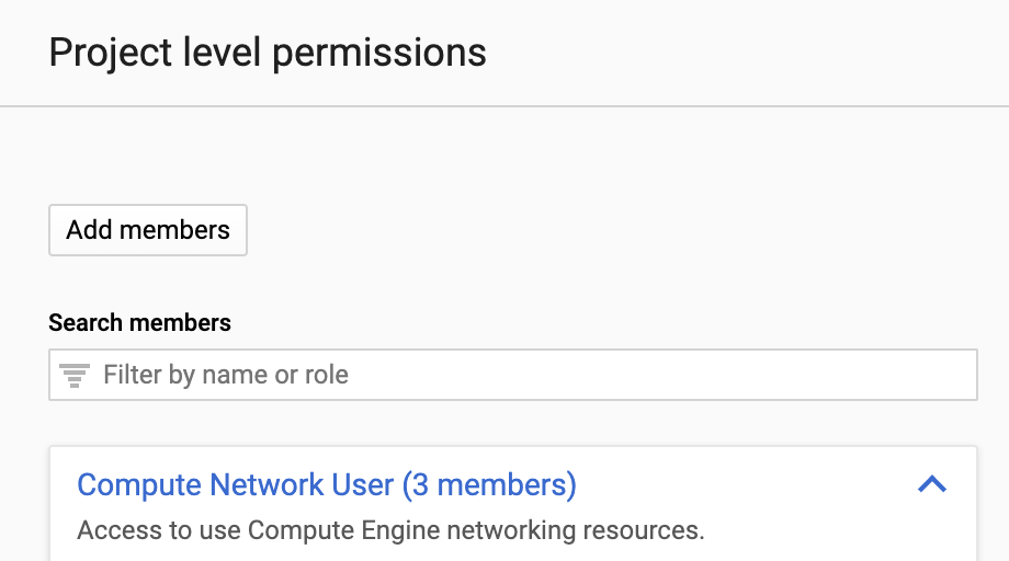Grant the Compute Network User role to the Spot Service Account you created when you first created your Spot Account.